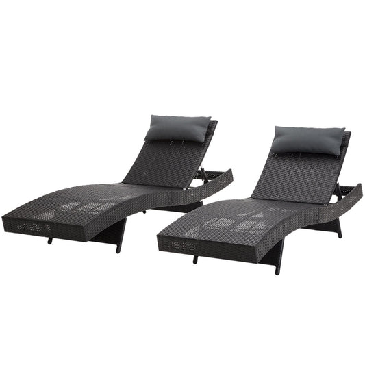 Set of 2 Sun Lounge Outdoor Furniture Wicker Lounger Rattan Day Bed Garden Patio Grey