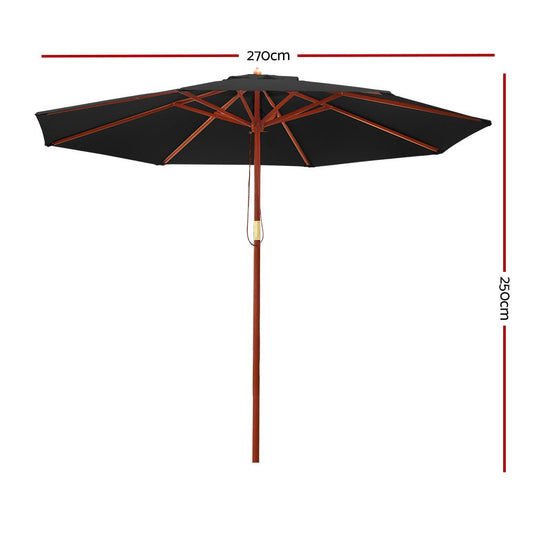 Outdoor Umbrella 2.7M Pole Cantilever Stand Garden Umbrellas Patio Black